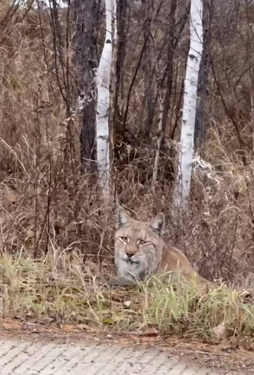 大夏岭岭的一个女人十分钟的旅程找到了山猫和驼鹿。它们都是“国宝”。当地林业局:极少见,但不建议联系。